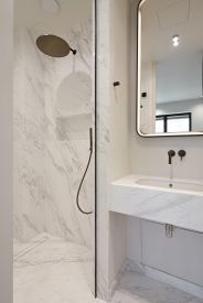 В каждой квартире установлены кухни от итальянского бренда Cesar со встроенной бытовой техникой премиальной линейки Smeg. Кухонный остров, столешница и фартук кухни выполнены из эксклюзивного итальянского мрамора Arabescato Grigio Orobico, одним из лучших видов мрамора на итальянском рынке натуральных отделочных камней.