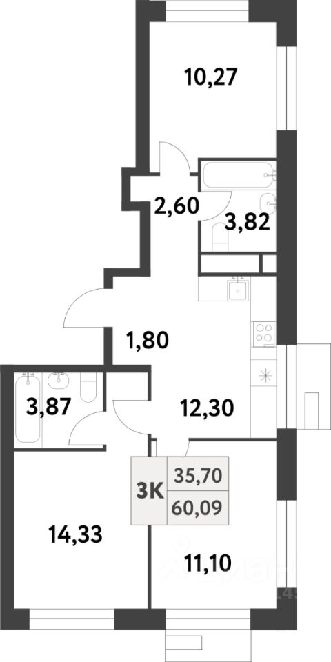 Продаётся 3-комнатная квартира в строящемся доме (Корпус 1), срок сдачи: IV-кв. 2026, общей площадью 60 кв.м., на 11 этаже. Многоквартирный жилой комплекс по адресу: г. Москва, поселение Сосенское, поселок Газопровод, улица Лесные Поляны 5-я, земельный участок 20