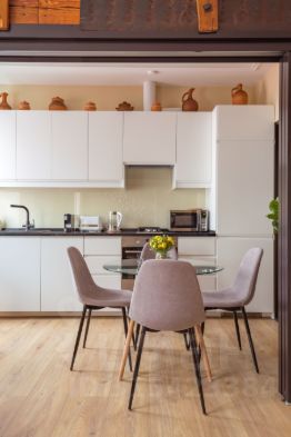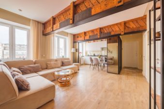Мягкие пастельные тона в сочетании с массивными 132 летними балками создают неповторимое сочетание уюта и комфорта. В квартире присутствуют элементы декора подчёркивающие элегантность и европейский стиль. Квартира расположена в самом центре Москвы в 4 минутах ходьбы от метро Пушкинская/Тверская/Чеховская и в 10 минутах от Красной площади. В шаговой доступности огромное количество кафе, ресторанов, магазинов и достопримечательностей.