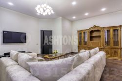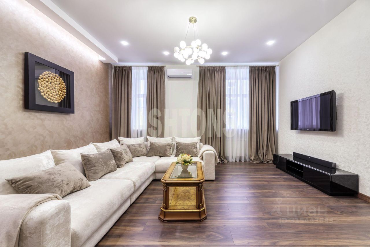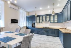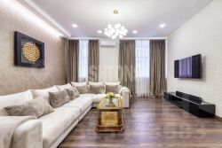 Функциональная планировка квартиры: гостиная, кухня, 4 изолированные комнаты, 1 совмещенный с/у с ванной, 1 гостевой с/у, гардеробная, постирочная. Есть балкон. Высота потолков - 3.2 м. Кондиционеры в каждой комнате, бойлер, система шумоизоляции. Окна на две стороны: Калашный переулок и внутренний двор. На полу паркет. Дизайнерский ремонт.