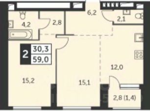 Для встреч с друзьями и теплых вечеров с близкими - кухня-гостиная 27.1 кв.м. Можно изолировать и создать отдельные пространства кухни (12 кв..м) и гостиной (15.1 кв.м.) - 2 огромных окна позволят изолировать комнаты. Спальня с отдельным санузлом.