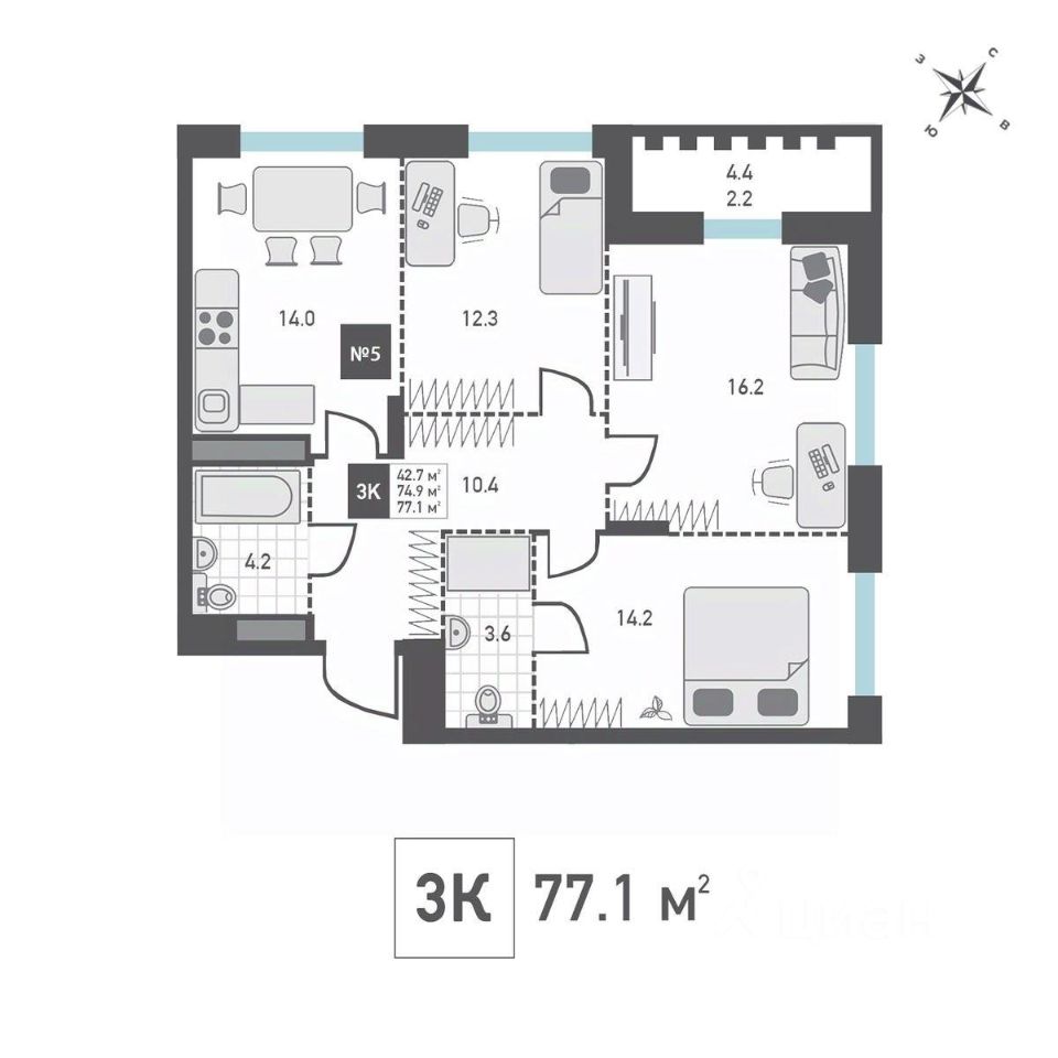 Продаётся 3-комнатная квартира в строящемся доме (Корпус 2), срок сдачи: IV-кв. 2026, общей площадью 77.1 кв.м., на 3 этаже. Жилой дом со встроенными нежилыми помещениями и подземной автостоянкой, расположенный по адресу: г. Москва, внутригородское муниципальное образование Матушкино, г. Зеленоград