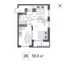 Продаётся 2-комнатная квартира в строящемся доме (Корпус 4), срок сдачи: IV-кв. 2026, общей площадью 58.8 кв.м., на 5 этаже. Жилой дом со встроенными нежилыми помещениями и подземной автостоянкой, расположенный по адресу: г. Москва, внутригородское муниципальное образование Матушкино, г. Зеленоград