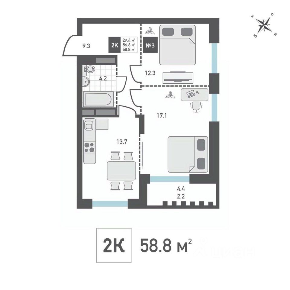 Продаётся 2-комнатная квартира в строящемся доме (Корпус 4), срок сдачи: IV-кв. 2026, общей площадью 58.8 кв.м., на 13 этаже. Жилой дом со встроенными нежилыми помещениями и подземной автостоянкой, расположенный по адресу: г. Москва, внутригородское муниципальное образование Матушкино, г. Зеленоград