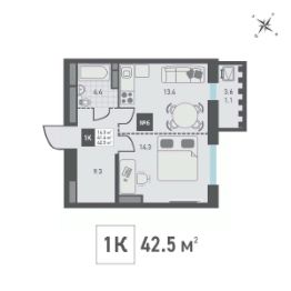 Продаётся 1-комнатная квартира в строящемся доме (Корпус 1), срок сдачи: IV-кв. 2026, общей площадью 42.5 кв.м., на 2 этаже. Жилой дом со встроенными нежилыми помещениями и подземной автостоянкой, расположенный по адресу: г. Москва, внутригородское муниципальное образование Матушкино, г. Зеленоград