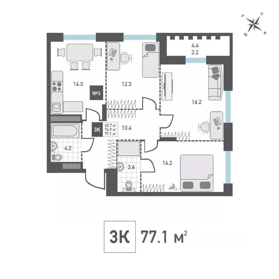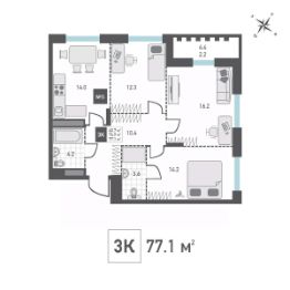 Продаётся 3-комнатная квартира в строящемся доме (Корпус 1), срок сдачи: IV-кв. 2026, общей площадью 77.1 кв.м., на 13 этаже. Жилой дом со встроенными нежилыми помещениями и подземной автостоянкой, расположенный по адресу: г. Москва, внутригородское муниципальное образование Матушкино, г. Зеленоград