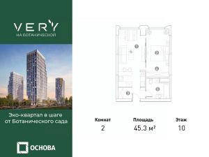 Продается 2-к квартира площадью 45.3 кв.м. на 7-м этаже 29 этажного дома в ЖК "Very" от ГК ОСНОВА.