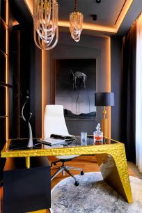 первый этаж - гостевой с/у, две гардеробных, две спальни, кухня-гостиная, мастер блок с ванной комнатой и большой гардеробной, винная комната.