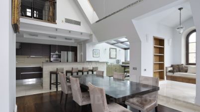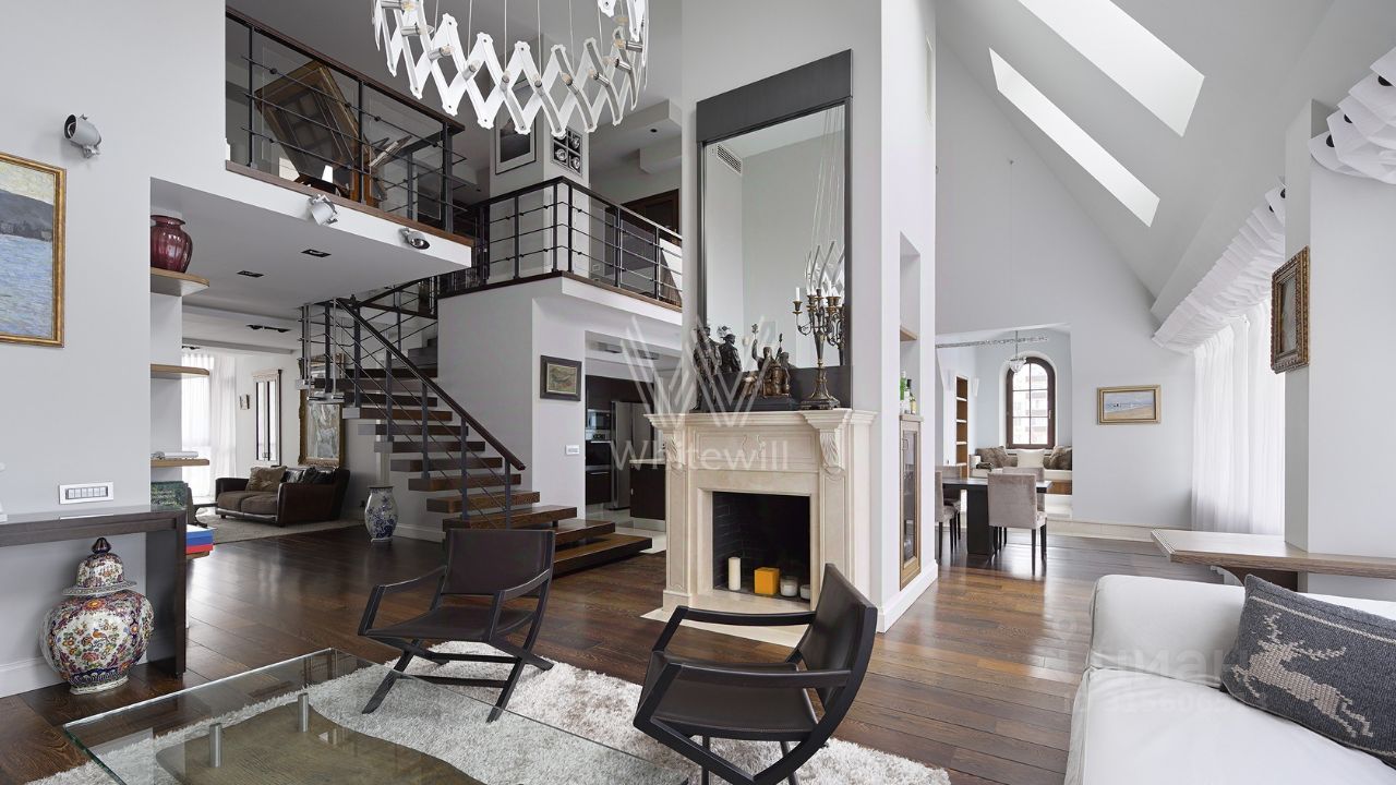 Эксклюзив Whitewill. Двухуровневый пентхаус общей площадью 319 м² (плюс терраса 26,4м² и балкон 7м² ) в клубном доме премиум-класса "Дом Удачи" на 6-м этаже. Атмосфера загородного дома: второй свет в гостиной, камин, терраса. Выполнена авторская отделка в современном стиле. Квартира укомплектована мебелью, бытовой техникой Miele. Продуманы различные сценарии освещения — дизайнерские люстры, настенные светильники и споты.