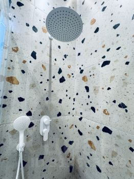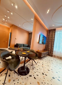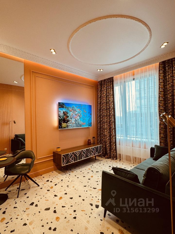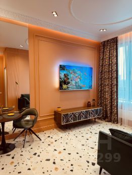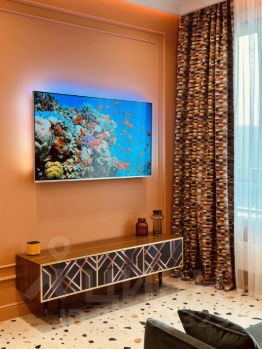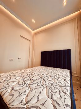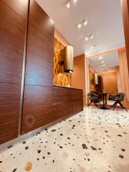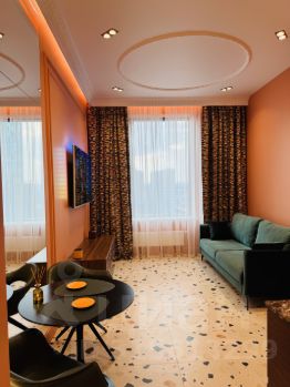 Квартира состоит из - уютная изолированная спальня, с большим высоким гардеробом, разными видами освещения; светлый зал/студио с полноценным раскладывающимся диваном, с отдельностоящей обеденной зоной; зона кухни с мебельным гарнитуром класса люкс, выполнена из натурального шпона, включая фурнитуру Blum, со встроенной качественной техникой известных брендов - встроенный холодильник, варочная панель, дизайнерская вытяжка подключенная напрямую в вытяжную вентиляцию, встроенная стиральная машина, столешница выполнена на заказ из натурального мрамора Imperador Gold, стеновая панель из штучной итальянской плитки; ванная комната выполнена с использованием итальянской эксклюзивной штучной плитки, установлен тропический душ, встроенная сантехника, есть душ биде. Телевизор Philips со Смарт-ТВ высокого разрешения 4К, и умной подсветкой Ambilight, установлен высокоскоростной интернет, умное освещение, система кондиционирования Electrolux. Дорогостоящая мебель, предметы интерьера и дизайна, гипсовая лепнина, итальянские светильники. Для хранения вещей предусмотрены - гардеробная, полноценный шкаф при входе, также большой шкаф в спальне, шкаф в санузле, кровать с подъемным механизмом. В ЖК есть двухуровневая парковка, и вся необходимая инфраструктура (магазины, супермаркеты, открывается фитнес-клуб, кафе, рестораны, и многое другое)