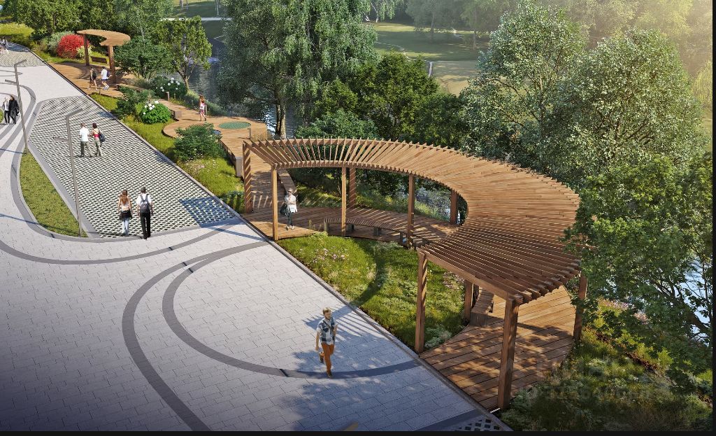 Расположен на благоустроенной набережной реки Сходня, в окружении множества парковых зон и в пешей доступности от метро и МЦК.
