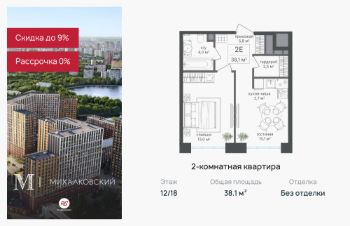 Продаётся 2-к квартира 38,1 кв.м. в ЖК "Михалковский" на 12-м этаже 18 этажного дома.