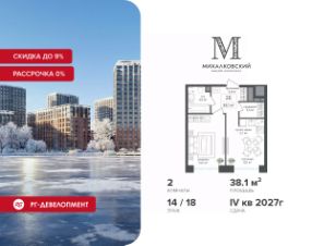 Продаётся 2-к квартира 38,1 кв.м. в ЖК "Михалковский" на 14-м этаже 18 этажного дома.