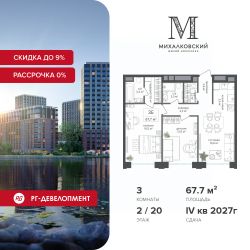Продаётся 3-к квартира 67,7 кв.м. в ЖК "Михалковский" на 2-м этаже 20 этажного дома.