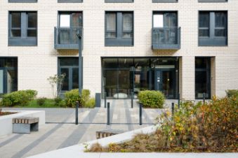 Подъезды на уровне земли со сквозными выходами. Два лифта со спуском на подземный паркинг.