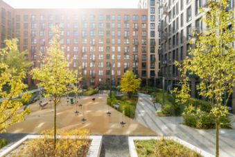 Дворы без машин. В ЖК предусмотрен подземный паркинг, надземная гостевая парковка.
