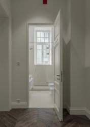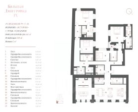 "Большая Дмитровка IX" проект реставрации объекта культурного наследия и новое строительство двух особняков. На закрытой территории расположены особняки с резиденциями класса deluxe, вертикальный лес и 3-уровневый подземный паркинг. Предлагается резиденция с четырьмя спальнями на четвертом этаже. Продуманная планировка: просторные мастер-спальни с отдельными гардеробными и ванными с окном, гостиная-столовая площадью 60 кв. м, кухня с островом из натурального мрамора и хозяйственные помещения. В резиденции высокие потолки и панорамный вид на улицу Большая Дмитровка и закрытую территорию комплекса. Особым украшением является исторический балкон с отреставрированными коваными перилами. Отделка осуществляется с применением натуральных материалов: мрамора и ценных пород дерева. Подобраны элегантные детали интерьера и мягкая мебель. На кухне встроена бытовая техника Miele и кухонные модули Rossana. Стены и пол ванных комнат выложены мрамором Pietra Grey, установлен санфаянс Villeroy&Boch и Gessi. Резиденция находится в особняке "История" это реставрация доходного дома 1903 года проекта Адольфа Эрихсона. Элегантность фасада соответствует эстетике модерна и дополнена уникальным декором — стилизованными барельефами древнеегипетских мастаба и масками египетских фараонов. Дом был бережно реконструирован и сохранил исторический облик. Лобби это роскошная парадная галерея, украшенная мрамором и лепниной. В доме интегрированы современные инженерные системы: приточно-вытяжная вентиляции с подготовкой и увлажнением воздуха, система центрального кондиционирования с индивидуальными фанкойлами, индивидуальный тепловой пункт, системы очистки воды. В ванных комнатах и постирочных предусматривается устройство электрического теплого пола.