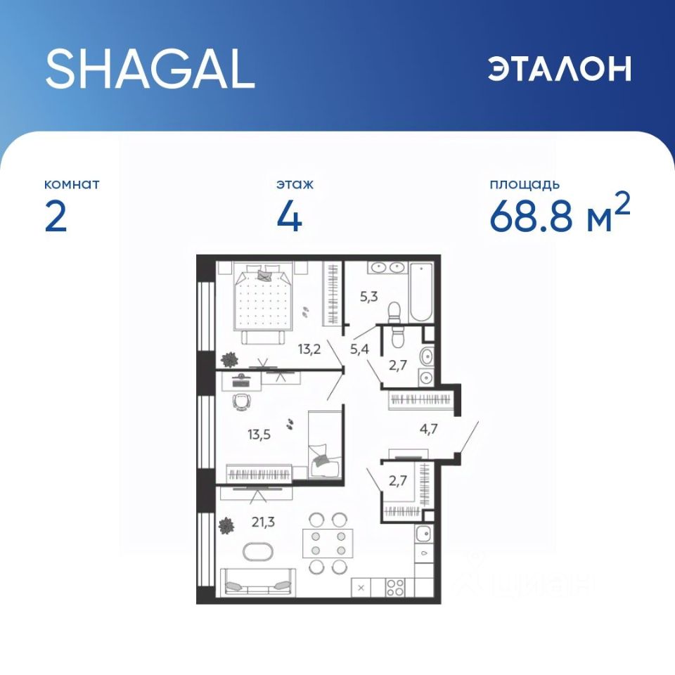 68,8 м²