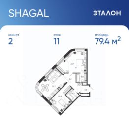 Продается квартира 213, по адресу Москва, внутригородская территория, муниципальный округ Даниловский, набережная Марка Шагала, земельный участок 15, корпус Жилой квартал Shagal, 2 очередь, 2 этап, корпус 2 в Shagal на 11 этаже, с площадью 79.8 м2.