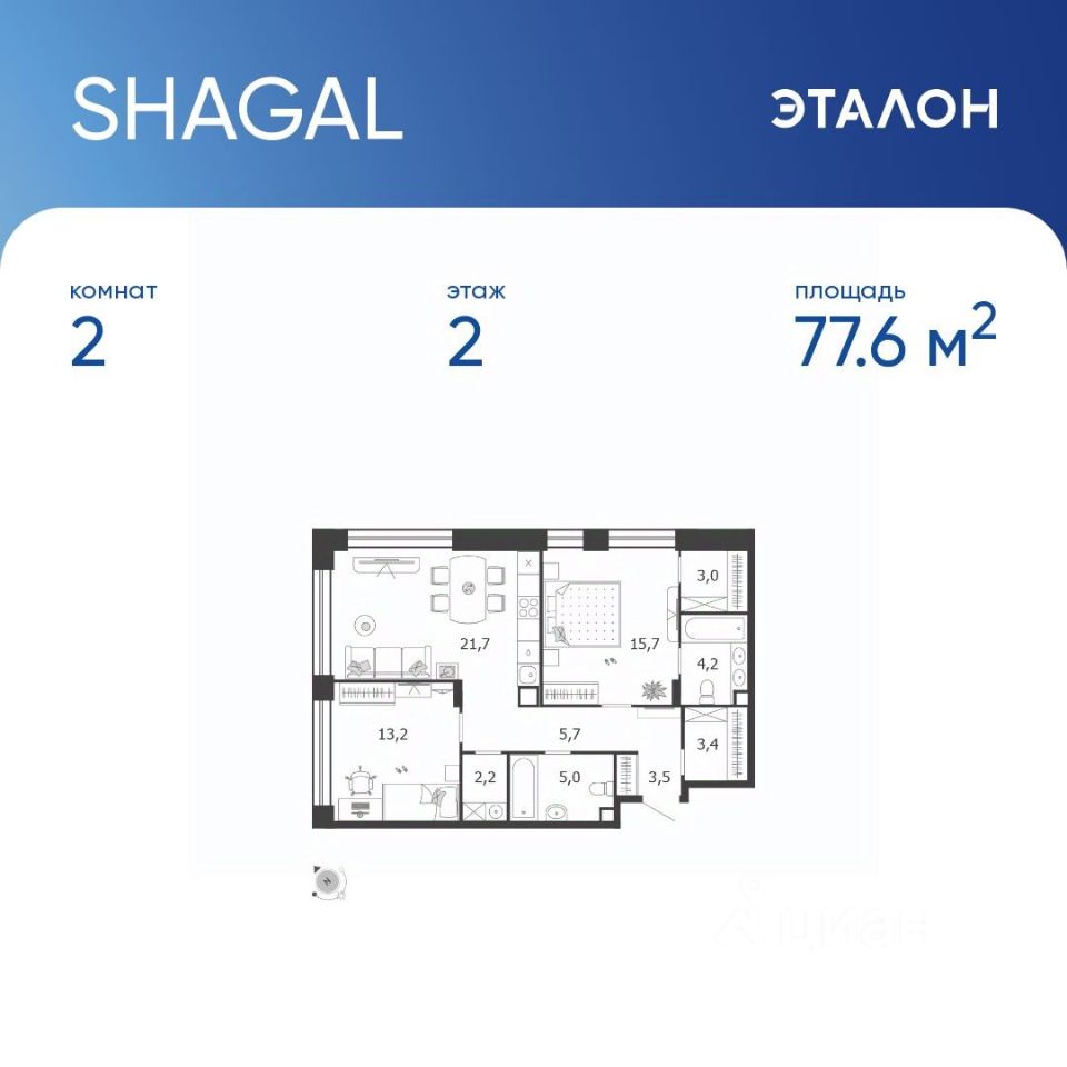 21,7 м²