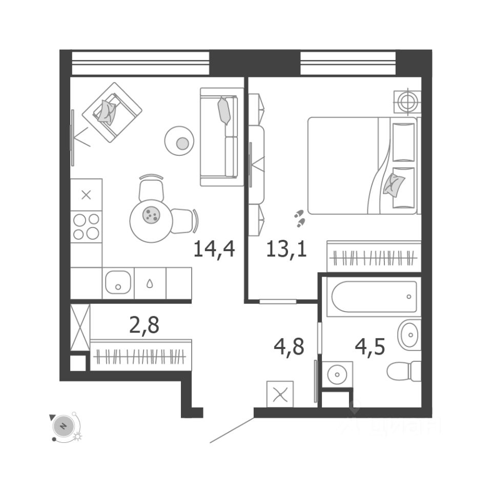 14,4 м²