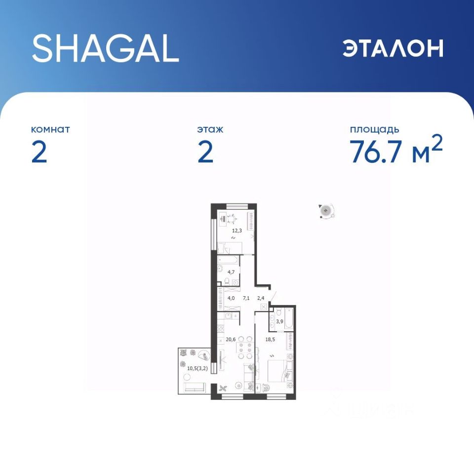 76,7 м²