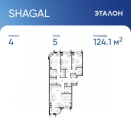Продается квартира 16, по адресу Москва, внутригородская территория, муниципальный округ Даниловский, набережная Марка Шагала, земельный участок 15, корпус Жилой квартал Shagal, 2 очередь, 2 этап, корпус 1 в Shagal на 5 этаже, с площадью 123.7 м2.