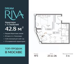 Продаётся Квартира с 1 спальней квартира на 23 этаже 26-этажного дома (3 корпус).
