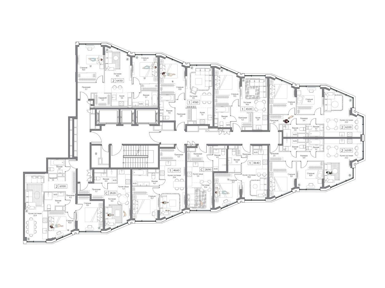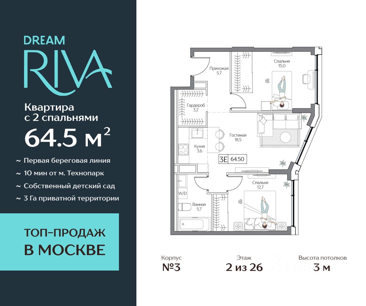 Общая площадь: 64.5 кв.м.