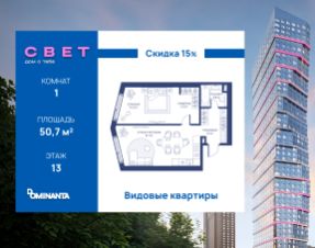 Жилой комплекс "СВЕТ" — воплощение современного комфорта и архитектурного изящества, созданное девелопером Dominanta в сотрудничестве с известным бюро СПИЧ. Комплекс представляет собой элегантное 52-этажное здание, расположенное в Западном Дегунино, на Дмитровском шоссе, 83А. Удачное местоположение обеспечивает удобство для жителей: станция метро "Селигерская" находится в пешей доступности, что делает путь в центр Москвы быстрым и комфортным.