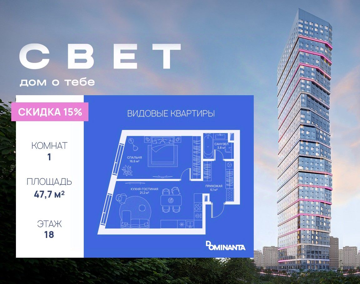 Жилой комплекс "СВЕТ" — воплощение современного комфорта и архитектурного изящества, созданное девелопером Dominanta в сотрудничестве с известным бюро СПИЧ. Комплекс представляет собой элегантное 52-этажное здание, расположенное в Западном Дегунино, на Дмитровском шоссе, 83А. Удачное местоположение обеспечивает удобство для жителей: станция метро "Селигерская" находится в пешей доступности, что делает путь в центр Москвы быстрым и комфортным.