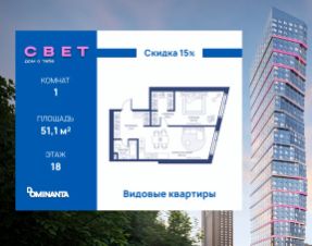 Жилой комплекс "СВЕТ" — воплощение современного комфорта и архитектурного изящества, созданное девелопером Dominanta в сотрудничестве с известным бюро СПИЧ. Комплекс представляет собой элегантное 52-этажное здание, расположенное в Западном Дегунино, на Дмитровском шоссе, 83А. Удачное местоположение обеспечивает удобство для жителей: станция метро "Селигерская" находится в пешей доступности, что делает путь в центр Москвы быстрым и комфортным.