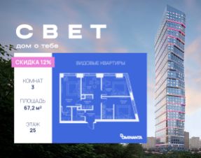Жилой комплекс "СВЕТ" — воплощение современного комфорта и архитектурного изящества, созданное девелопером Dominanta в сотрудничестве с известным бюро СПИЧ. Комплекс представляет собой элегантное 52-этажное здание, расположенное в Западном Дегунино, на Дмитровском шоссе, 83А. Удачное местоположение обеспечивает удобство для жителей: станция метро "Селигерская" находится в пешей доступности, что делает путь в центр Москвы быстрым и комфортным.