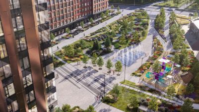 Почти половина территории района отдана под благоустройство. В ALIA три парка: Линейный парк с кафе и магазинами, Центральный парк с амфитеатром, сухим фонтаном и большим плейхабом для детей всех возрастов и Прибрежный парк на собственной набережной, одной из самых длинных в Москве. В каждом урбан-блоке — закрытый внутренний двор с гипоаллергенными растениями и детской площадкой.