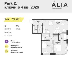 Продаётся 2-комнатная квартира 73 м². В жилом районе ALIA на 25-м этаже 28-этажного дома.