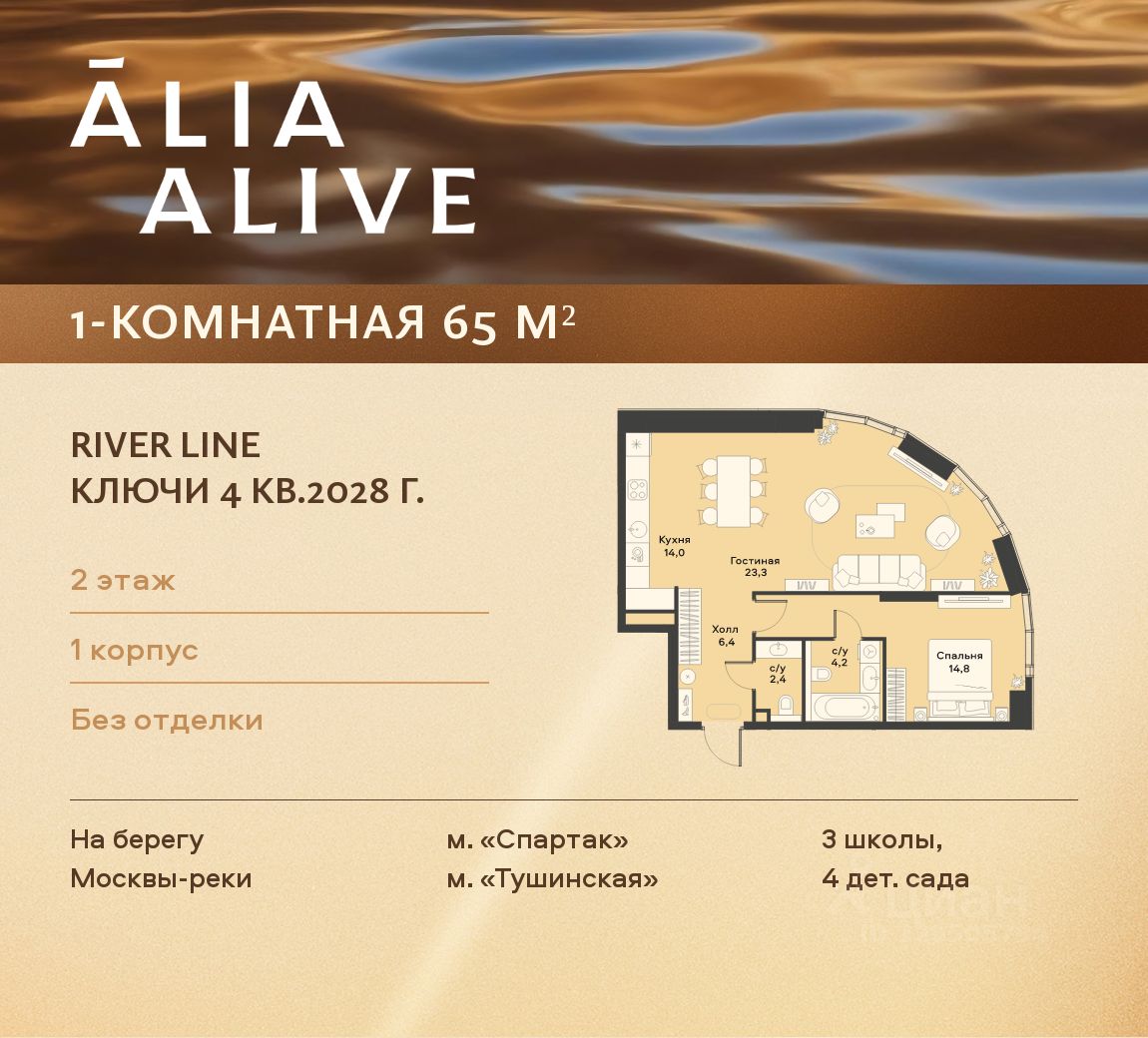 Одна из самых ярких и впечатляющих частей жилого района ALIA — премиальный квартал ALIA ALIVE. Это две башни LIGHTHOUSE от бюро APEX на первой береговой линии Москвы-реки с закрытым внутренним двором, детскими и спортивными площадками. Во всех квартирах — высокие потолки и панорамные окна, из которых открываются вдохновляющие виды на реку и зеленые массивы парков. Среди редких форматов — квартиры с террасой, двухуровневые квартиры и пентхаусы.