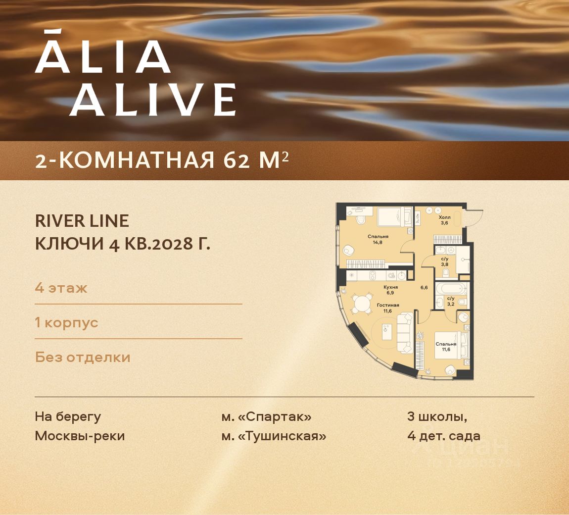 Одна из самых ярких и впечатляющих частей жилого района ALIA — премиальный квартал ALIA ALIVE. Это две башни LIGHTHOUSE от бюро APEX на первой береговой линии Москвы-реки с закрытым внутренним двором, детскими и спортивными площадками. Во всех квартирах — высокие потолки и панорамные окна, из которых открываются вдохновляющие виды на реку и зеленые массивы парков. Среди редких форматов — квартиры с террасой, двухуровневые квартиры и пентхаусы.