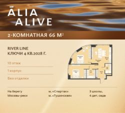 Одна из самых ярких и впечатляющих частей жилого района ALIA — премиальный квартал ALIA ALIVE. Это две башни LIGHTHOUSE от бюро APEX на первой береговой линии Москвы-реки с закрытым внутренним двором, детскими и спортивными площадками. Во всех квартирах — высокие потолки и панорамные окна, из которых открываются вдохновляющие виды на реку и зеленые массивы парков. Среди редких форматов — квартиры с террасой, двухуровневые квартиры и пентхаусы.