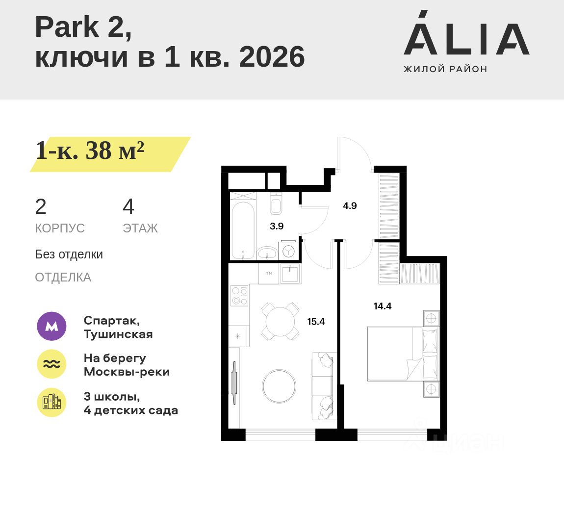 Жилой район ALIA — это дома бизнес-класса у слияния Москвы-реки и Сходни. ALIA находится в Покровском-Стрешневе, экологически чистом районе на престижном северо-западе столицы. Район возводится на бывшей территории Тушинского аэрополя, где никогда не было промышленного производства.