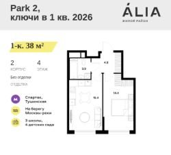 Продаётся 1-комнатная квартира 38 м². В жилом районе ALIA на 4-м этаже 11-этажного дома.