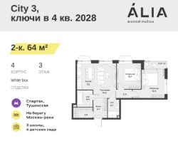 Продаётся 2-комнатная квартира 64 м². В жилом районе ALIA на 3-м этаже 18-этажного дома.