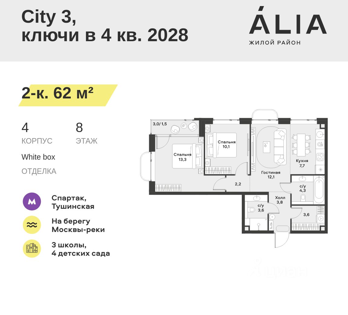 Жилой район ALIA — это дома бизнес-класса у слияния Москвы-реки и Сходни. ALIA находится в Покровском-Стрешневе, экологически чистом районе на престижном северо-западе столицы. Район возводится на бывшей территории Тушинского аэрополя, где никогда не было промышленного производства.