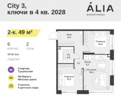 Продаётся 2-комнатная квартира 49 м². В жилом районе ALIA на 2-м этаже 28-этажного дома.