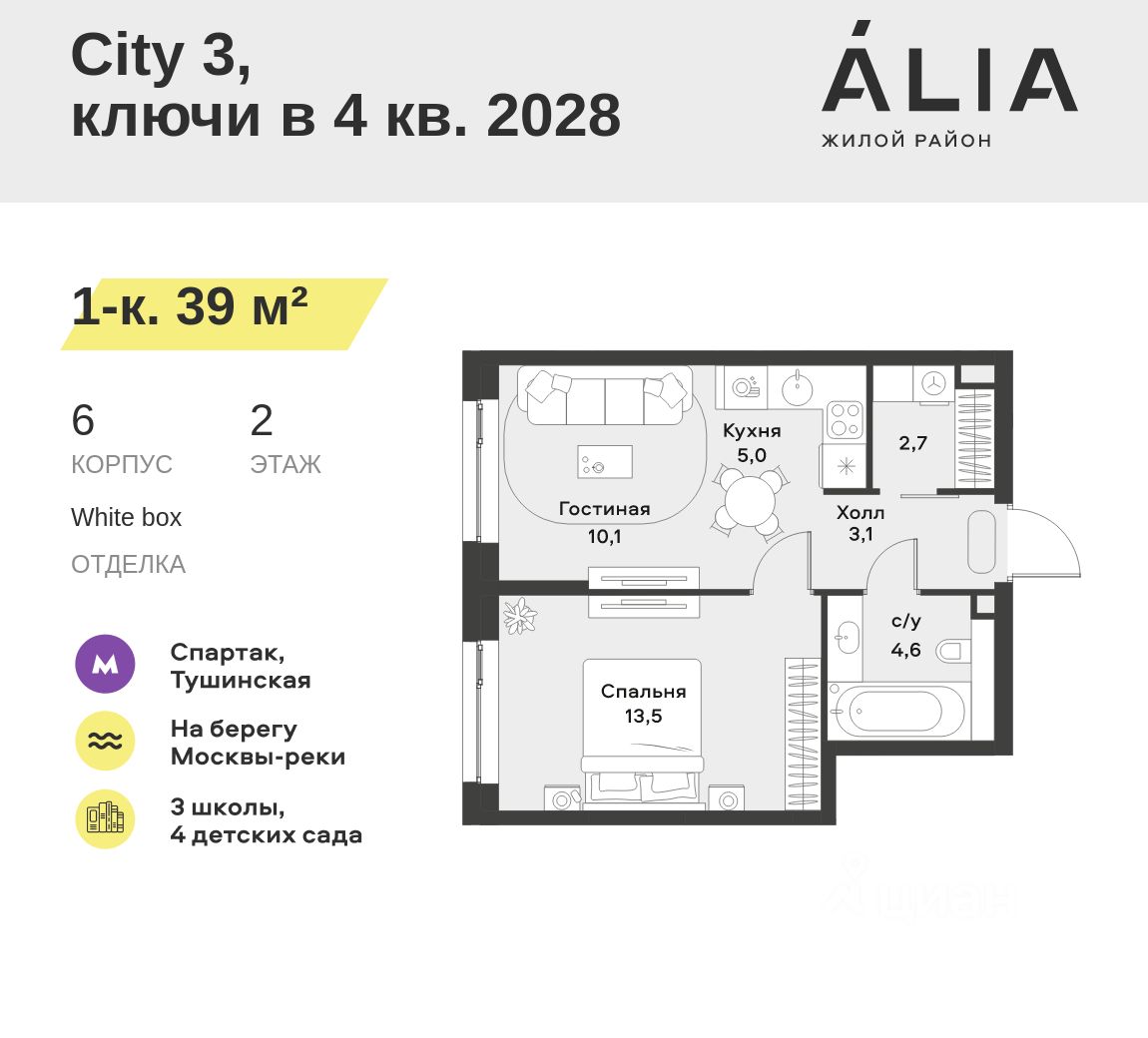 Жилой район ALIA — это дома бизнес-класса у слияния Москвы-реки и Сходни. ALIA находится в Покровском-Стрешневе, экологически чистом районе на престижном северо-западе столицы. Район возводится на бывшей территории Тушинского аэрополя, где никогда не было промышленного производства.