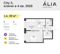 Продаётся 1-комнатная квартира 39 м². В жилом районе ALIA на 2-м этаже 28-этажного дома.