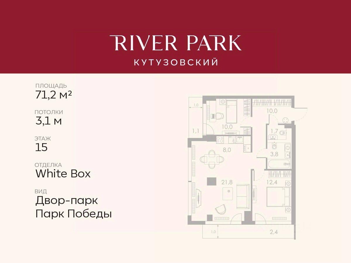 Продается 2-к квартира площадью 71.2 кв.м. на 15-м этаже в жилом комплексе премиум-класса River Park Кутузовский в Башне Diamond Tower