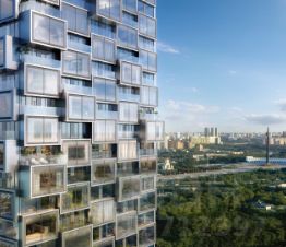 Архитектура от именитого бюро ADM отличается уникальной пластикой фасадов - башни словно парят в воздухе, играя гранями как драгоценные камни. Жилой комплекс состоит из 5-ти небоскребов с home park на закрытой территории и внешней торговой галереей с открытым доступом.