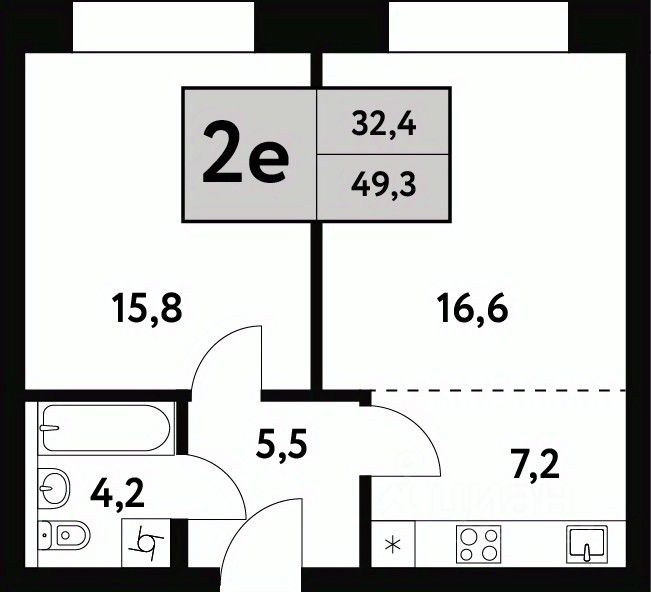 Общая площадь49,3 м²