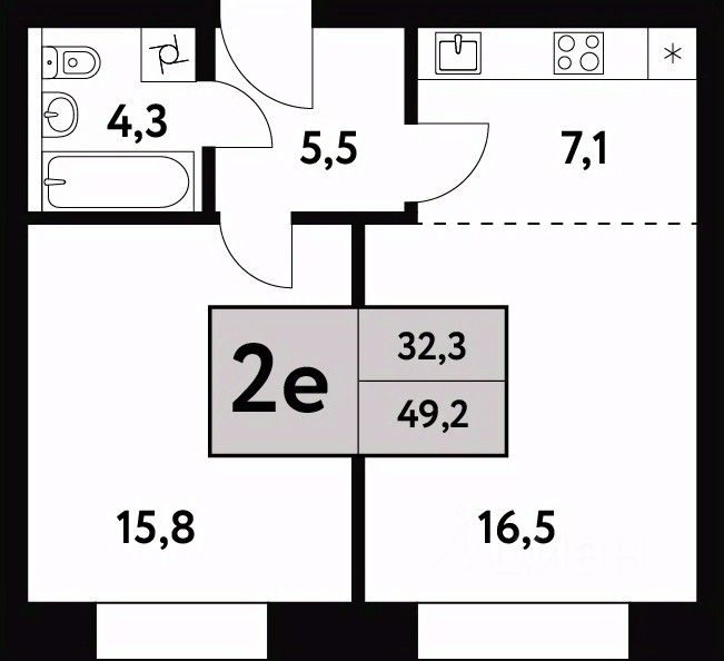 Жилая площадь32,3 м²