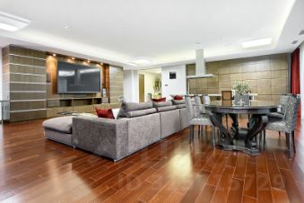 Планировочное решение: большая гостиная-кухня-столовая, 2 просторные спальни со своими санузлами и гардеробными комнатами, гостевой с/у, 2 гардеробные комнаты, постирочная.